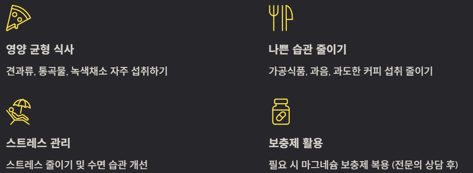 - 필요 시 마그네슘 보충제 복용 (전문의 상담 후)